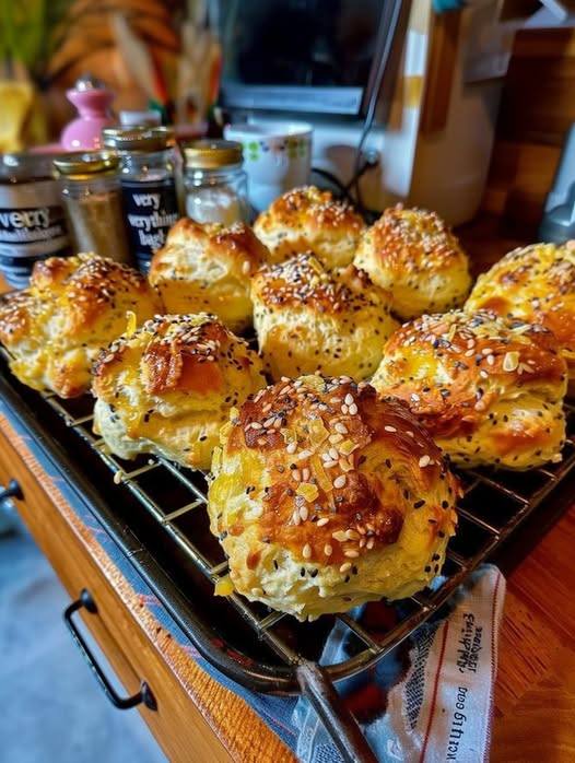 - The Topping: Brush the tops with melted butter and generously sprinkle the remaining everything bagel seasoning over each biscuit. 🥯🎨🤤