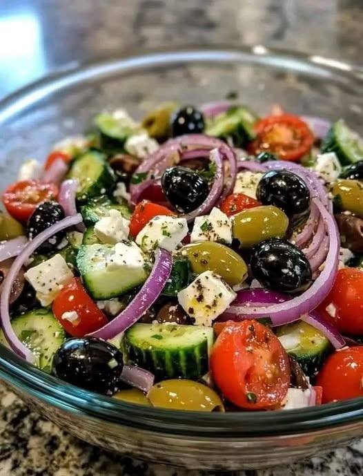 - The Briny Bits: Add a generous handful of both black and green olives to the bowl for that authentic Mediterranean tang. 🫒✨