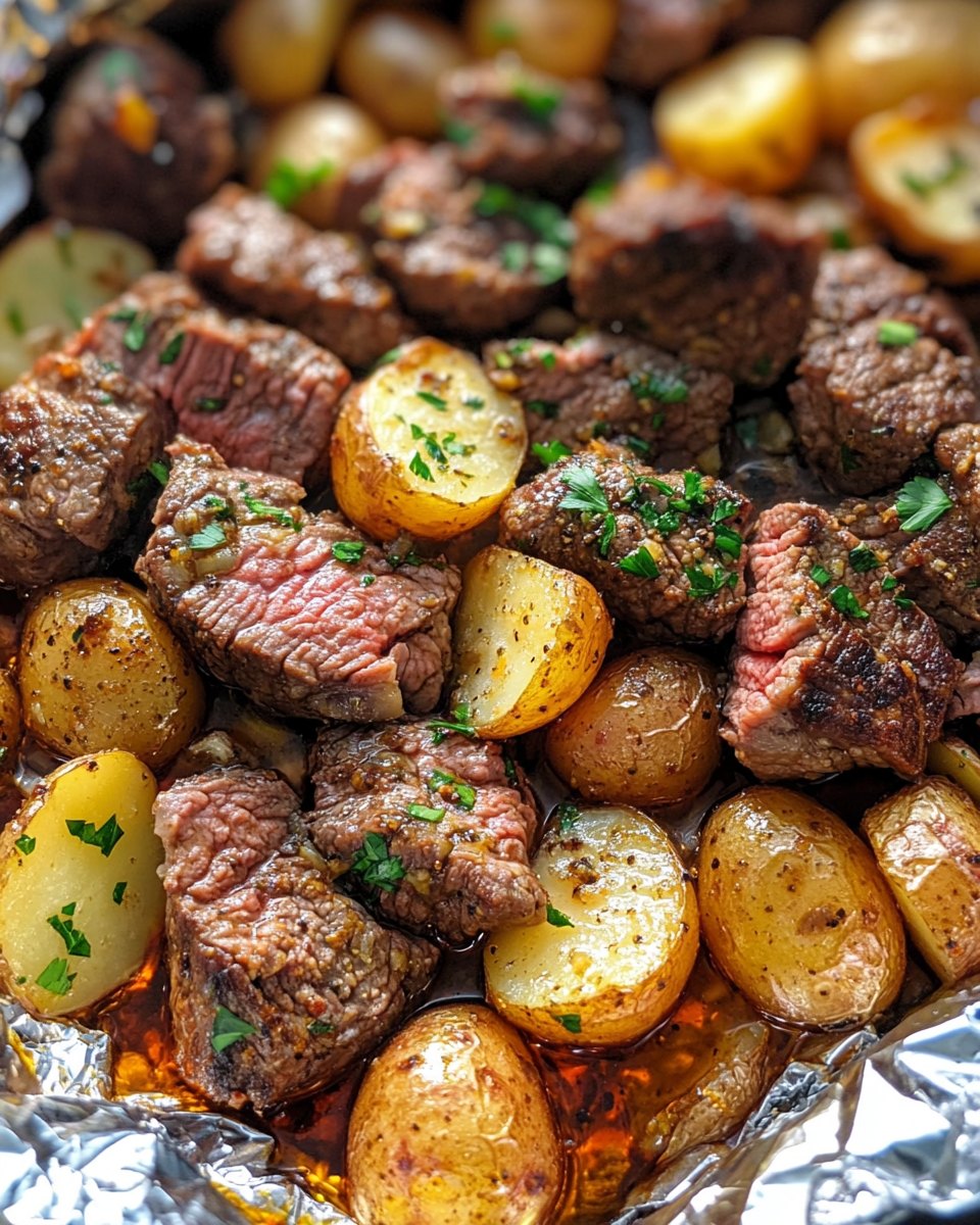 GARLIC STEAK AND POTATO FOIL PACKETS
