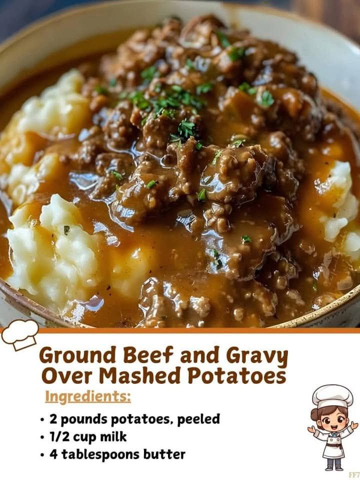 6. Plate it Up: Create a well in a big scoop of mashed potatoes and pour that glorious beef and gravy right over the top! 🥄🌊👑