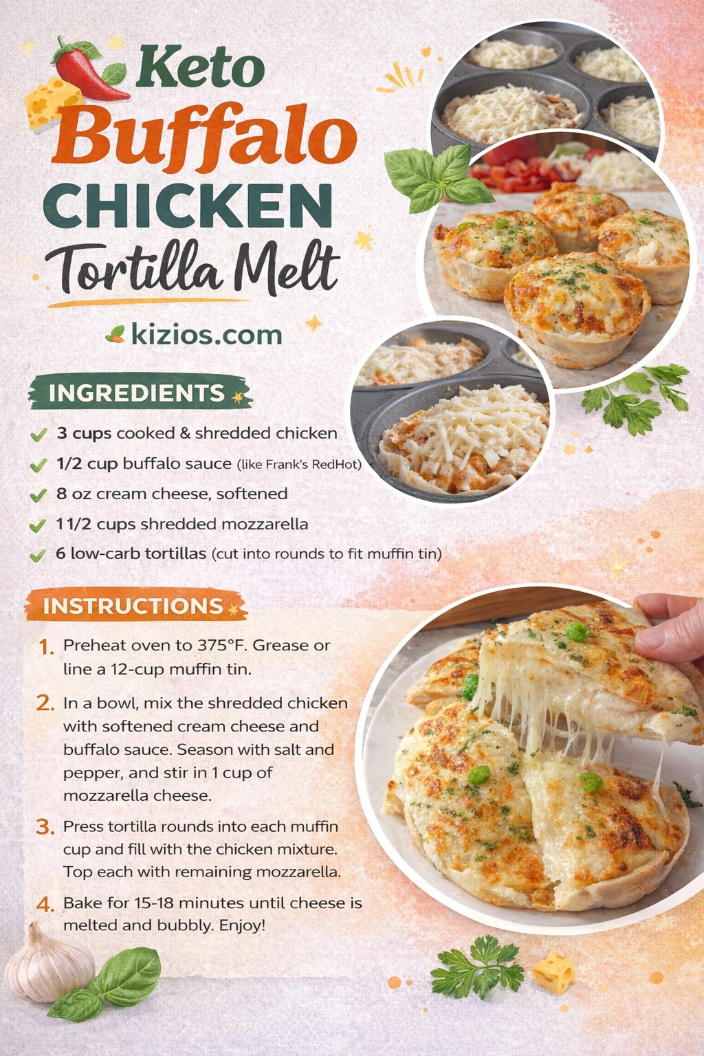 - Build the Cups: Press your low-carb tortilla rounds into each muffin cup. Fill them generously with the buffalo chicken mixture. 🌯📐✅