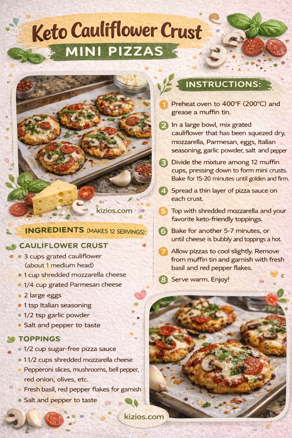 - Cool & Garnish: Allow pizzas to cool slightly before removing from the muffin tin. Garnish with fresh basil and red pepper flakes. 🌿🌬️💎