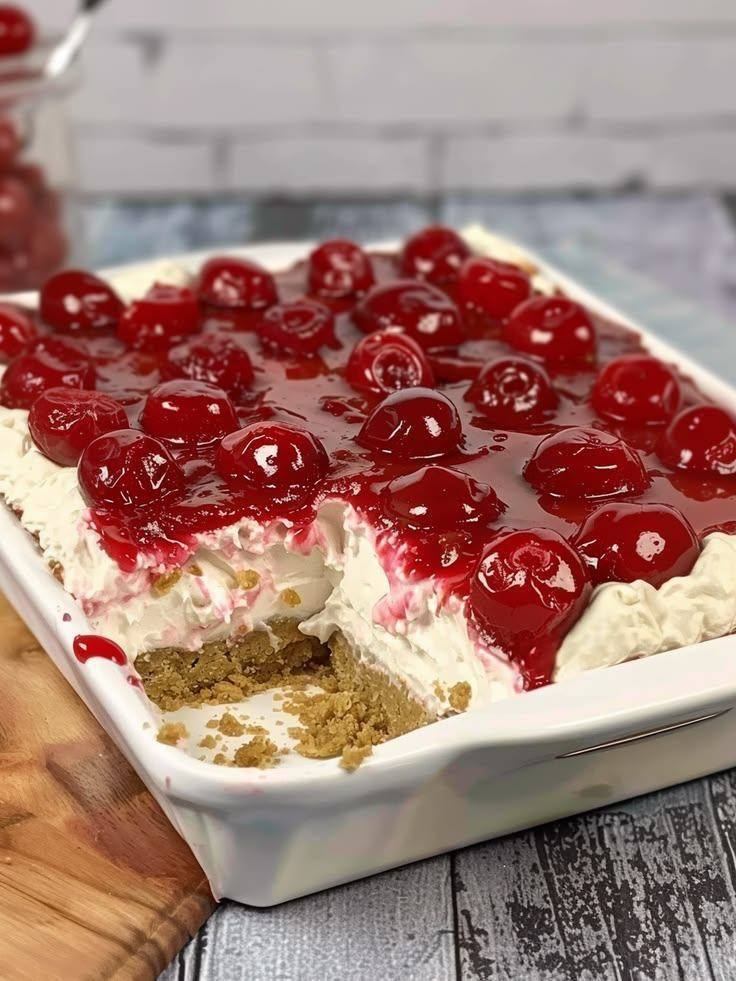 - Serve: Scoop out a generous square and enjoy the perfect balance of tart cherries and rich cream! 🍽️😋🧤✨