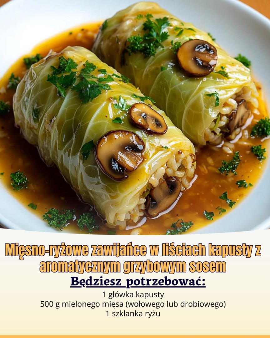 Mięsno-ryżowe zawijańce w liściach kapusty z aromatycznym grzybowym sosem