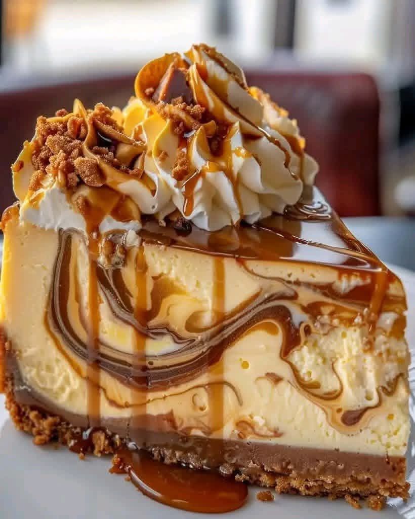 - The Swirl: Pour half of the batter onto the crust. Drizzle a few tablespoons of caramel sauce over it. Pour the remaining batter on top and use a knife to gently swirl in more caramel. 🍯🌀🤤