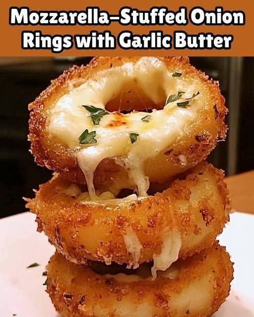 Mozzarella-Stuffed Onion Rings with Garlic Butter