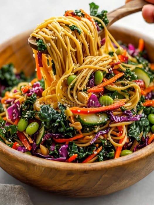 - The Big Mix: Add the cooked noodles to the vegetable bowl. Pour the sesame dressing over the top and toss everything together until every strand is perfectly coated. 🥢🤝🤤
